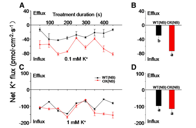 參考文獻:Yang T, et al. The Role of a Potassium Transporter OsHAK5 in Potassium Acquisition and Transport from Roots to Shoots in Rice at Low Potassium Supply Levels. Plant Physiology, 2014, 166: 945-959.
